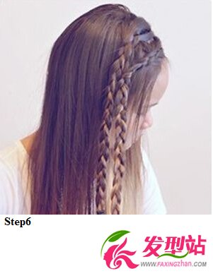 第六步:剩余的發(fā)尾改編成麻花辮,直至發(fā)尾處。