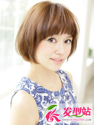 很可愛的一款短發(fā)發(fā)型哦,這款短發(fā)俏皮可愛,加上褐色的發(fā)色盡顯陽光之氣,發(fā)尾沿著臉部輪廓齊剪,微微內(nèi)扣修飾臉型,成功的打造了女孩的小臉,很適合圓臉的女生哦。