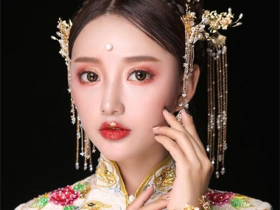 新娘子敬酒,奔波于各個桌的客人中,發(fā)型款式簡單些,更顯利落且游刃有余,簡單盤發(fā)添加眉心墜,靈動清麗。