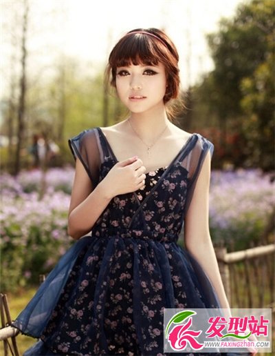 齊劉海的韓式低盤發(fā)設(shè)計對于圓臉的女生來說最襯臉的,在額上有著蓬松的質(zhì)感的劉海和在臉頰龐有著微微向后拉的柔順秀發(fā),簡單的盤在身后的秀發(fā)偶爾還冒出一點碎碎的發(fā)絲,給圓臉襯托出小女生的甜美感覺。