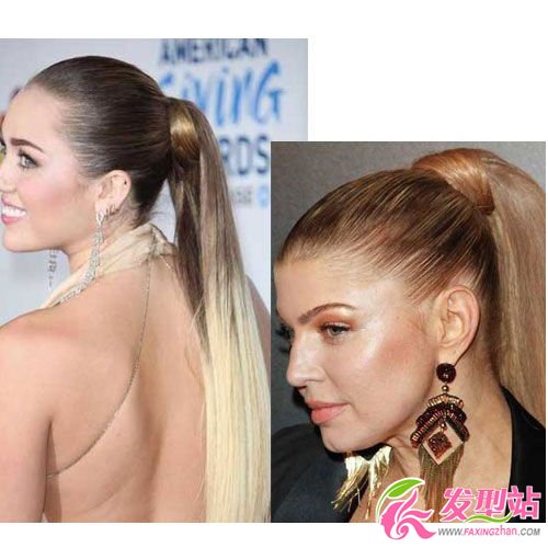 在紅毯非常常見的一款發(fā)型,發(fā)絲緊貼頭皮梳得一絲不茍,用頭發(fā)做發(fā)圈將馬尾扎起,后面的頭發(fā)再做些挑染,漸變,或者就是金色的發(fā)色,都女神范兒十足。
