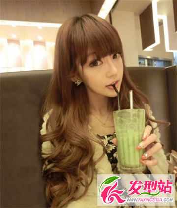 第一款是甜美可愛(ài)的小清新風(fēng)格的女生長(zhǎng)卷發(fā)發(fā)型,可愛(ài)俏皮的齊劉海發(fā)型,大波浪式的大卷發(fā)調(diào)皮有活力,活潑可愛(ài)。