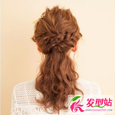 把辮子盤到半扎發(fā)上面