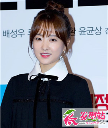 2017韓范十足盤發(fā)設(shè)計(jì)五:在帶來一款適合臉型不是很完美的菇?jīng)鰝兊囊豢铐n范十足的盤發(fā)發(fā)型設(shè)計(jì),簡單的花苞頭盤發(fā)搭配上齊劉海,微微卷曲的發(fā)絲,就會打造出甜美可人的你哦。