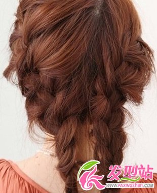 步驟二:將兩份的頭發(fā)分別編成辮子,然后固定好發(fā)尾。