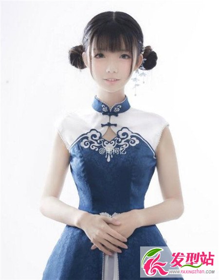 不管是古裝劇還是游戲代言,這款可愛(ài)的女仆雙丸子頭發(fā)型總不會(huì)缺少,將女生的那種機(jī)靈和可愛(ài)感展現(xiàn)。二次元?jiǎng)⒑#奚淼钠炫,造型很卡哇伊?/p>