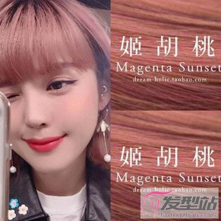 這種顏色是在極淺的咖啡色上融入了粉色的成分,翻出這種略帶橙色和粉色的感覺,好像還有點少量的紫色,但是主調(diào)時偏紅色的顏色,是ins大熱的發(fā)色。