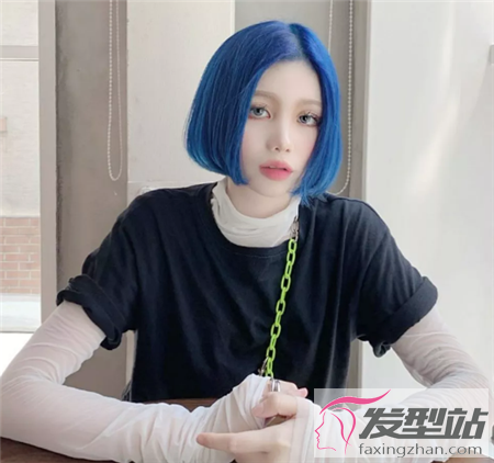 湖藍(lán)發(fā)色,比上一款深一些的發(fā)色。小清新的內(nèi)扣波波頭染發(fā),打造出眾森系小女生。