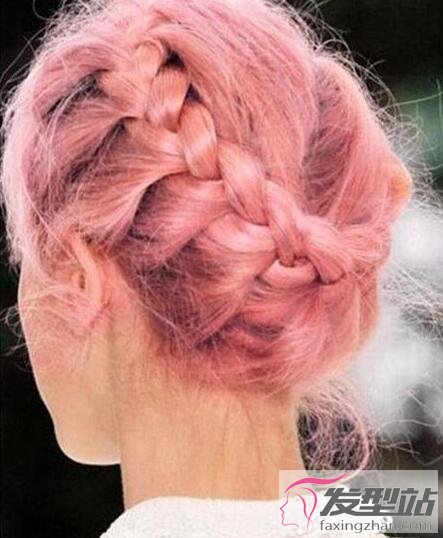 細碎的發(fā)絲點綴其間,使得這款盤發(fā)看上去頗為凌亂,將長發(fā)編織成立體感強烈的發(fā)辮,染成粉色更有少女感。