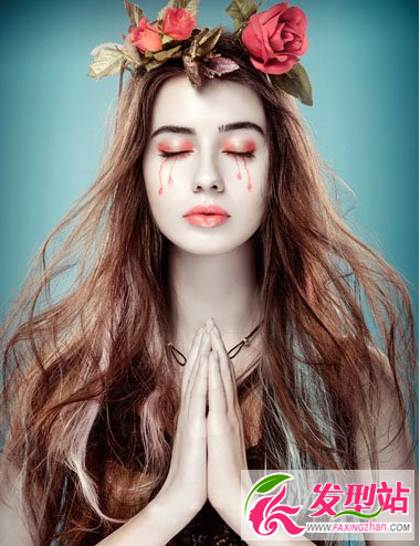 很是仙女一般的染發(fā)發(fā)型設(shè)計(jì),凌亂的深咖色的發(fā)色做主色,挑染上幾縷白色的發(fā)絲,帶上一定鮮花的花環(huán),輕松締造。