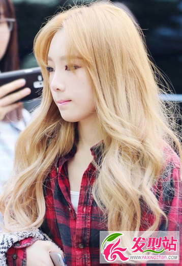 而走可愛路線的金泰妍,妝容都是偏淡的,因為人家臉小!如果是圓臉的女生,染金發(fā)要留劉海來修飾臉型,注意也要把眉毛也一起染了,眉毛的染色可以選擇比發(fā)色深一號的。
