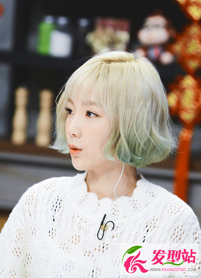 還有一種綠色染發(fā)就是金泰妍的薄荷綠,在金發(fā)的發(fā)尾染上可愛清晰的薄荷綠,非?蓯。