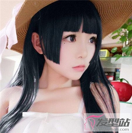 或許很多女生都喜歡這樣的發(fā)型款式:黑芝麻般純黑的長直發(fā),三刀平的劉海搭配,怎么看都很蘿莉很可愛的發(fā)型,給人甜美治愈系。