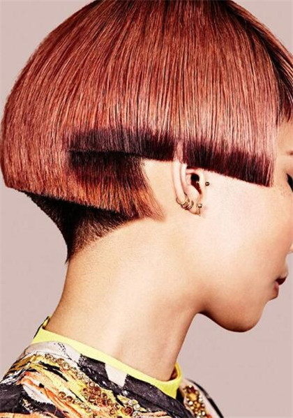 短發(fā)不規(guī)則的一刀切發(fā)型,短直發(fā)的層次剪裁,打造出霸氣的氣場。