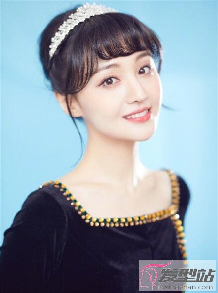 微卷齊劉海盤發(fā),加上皇冠勾勒出高貴典雅氣質(zhì),溫婉大方。