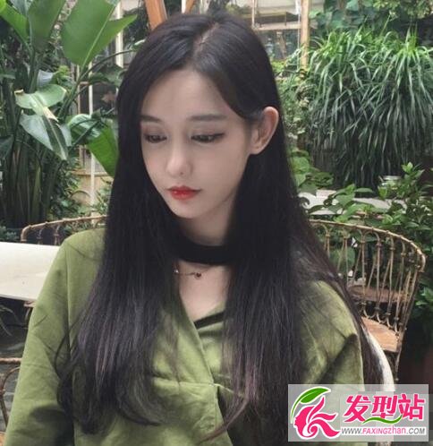 三七分長直發(fā),偏分很好的修飾臉型,自然黑色長直發(fā)+簡單的妝容就很顯女神感。