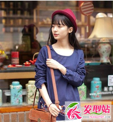 這款女生齊劉海長發(fā)發(fā)型,原汁原味的黑色發(fā)色搭配,發(fā)絲集中向后方的舒展擺放,展現(xiàn)出柔美的請性感效應(yīng),紅色的帽子搭配,一身藍色服裝在身,充滿了街拍范的味道。
