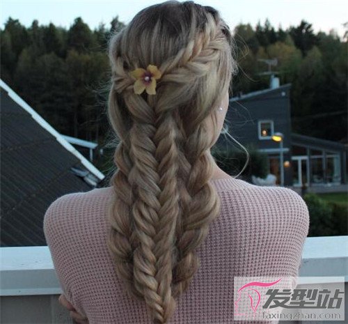 浪漫半扎發(fā)公主頭魚尾辮 長發(fā)及腰魚尾辮教程圖解