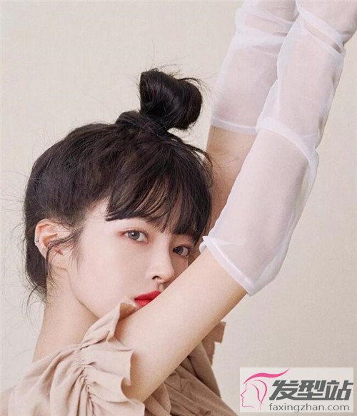 自來(lái)卷發(fā)質(zhì)的女生,頭發(fā)扎個(gè)丸子頭,自然蓬松的碎發(fā)絲增添甜美可愛(ài)的俏皮感,減齡效果滿分。