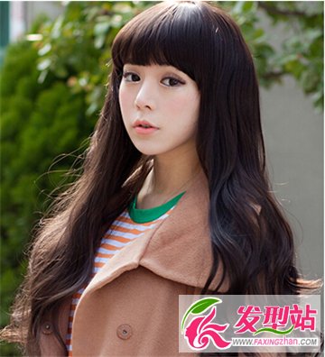 一款清純氣質(zhì)十足的唯美長(zhǎng)卷發(fā)發(fā)型,搭配減齡的齊劉海修飾,瞬間彰顯出一張精致五官,也是一款春季流行的美女燙發(fā)造型。