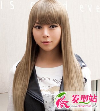 簡單直滑的長直發(fā)發(fā)型,染成了非常時尚的香檳色發(fā)色,襯托的整個造型非常的鮮活吸睛。