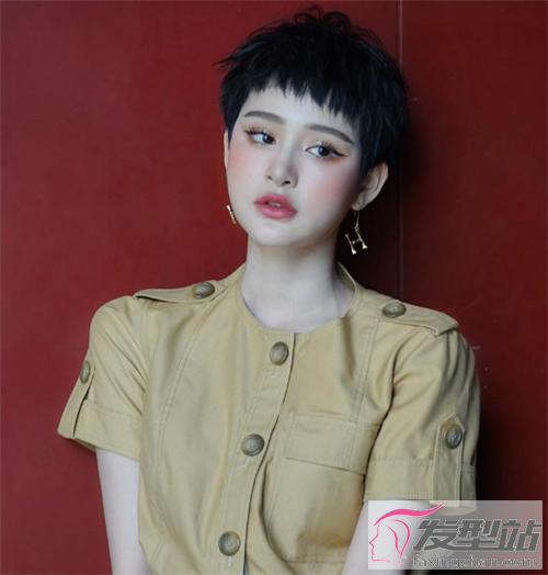 像這款短發(fā)即便不染發(fā)也很耐看,超短發(fā)將好看的臉型、天鵝頸線條完美勾勒出來。