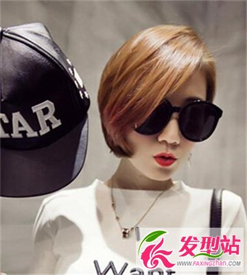 一直小編都認為短發(fā)式最帥氣的發(fā)型,這款不對稱的短發(fā)顯露了妹紙的時尚感覺,搭配上個性的棕黃色染發(fā),酷勁的黑墨鏡,棒球帽,頗具時尚魅力哦!