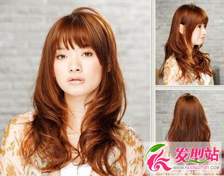 這款在日雜中經(jīng)常出現(xiàn)的長(zhǎng)發(fā)發(fā)型很適合圓臉的女生!厚重的斜劉海能從視覺(jué)上縮小臉部面積,而兩頰兩側(cè)向內(nèi)卷的空靈感發(fā)絲也有修飾寬臉的作用。