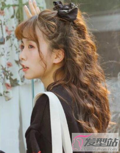 同樣是很適合年輕女生的芭比燙發(fā),細(xì)碎的發(fā)絲點(diǎn)綴其間,帶有幾分凌亂感,整體造型飄逸灑脫,半扎發(fā)更有公主范。