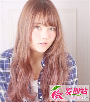 微卷的長發(fā)搭配上時髦的染發(fā)顏色,也顯得頗有氣質(zhì)范,輕盈的齊劉海不僅修飾了臉型,也凸顯出mm甜美的樣子。