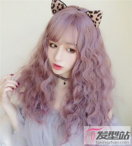 玉米燙發(fā)型可以打造出洋娃娃般精致的氣質(zhì),浪漫紫色系染發(fā)搭配,溫柔唯美。