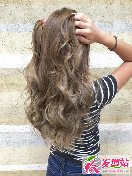 長發(fā)大波浪卷發(fā),經(jīng)典唯美,搭配上淺咖系亞麻棕色染發(fā),非常時(shí)尚。
