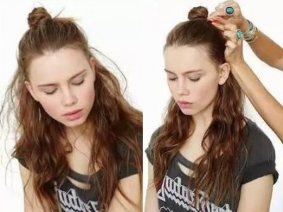 慵懶風(fēng)的發(fā)型特別吸精,重點(diǎn)是還與俏皮到不行的短發(fā)半丸子頭搭配,頭頂扎上丸子頭,分分鐘為你減齡顯嫩。