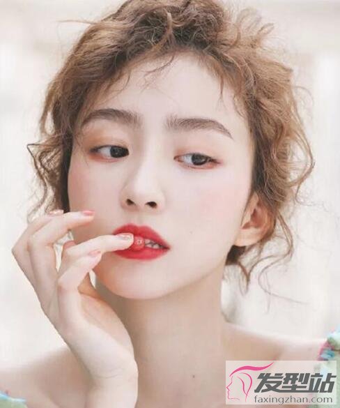 發(fā)際線高的女生很適合留碎發(fā)劉海,輕薄又減齡,將頭發(fā)燙卷,半扎成哪吒頭,盡顯俏皮可愛魅力。