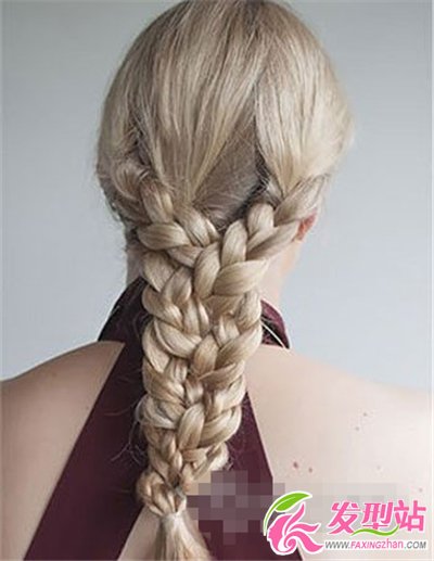 優(yōu)雅而浪漫的歐美風(fēng)編發(fā)發(fā)型,第一眼就能讓人喜歡上?瓷先ルm然很復(fù)雜,但是只要你會麻花辮就很容易了。只是簡單的將左右兩側(cè)的頭發(fā)分別編織成麻花辮,然后在將兩條編號的發(fā)辮與剩余的頭發(fā)再編成一束大麻花辮。發(fā)量多的女生做這款編發(fā)是最適合了。