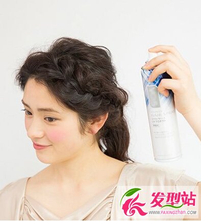 第三步:在發(fā)絲上噴上發(fā)膠讓發(fā)型看起來更加的飽滿有型。