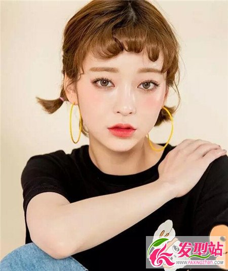 短發(fā)也有半丸子頭,只需將頭發(fā)半扎成兩個高高的丸子頭即可。