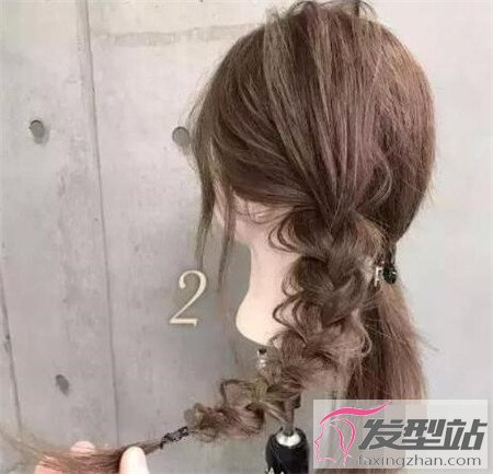 2、將少的這邊的頭發(fā)分成三股編成一條辮子,然后將辮子拉蓬松。