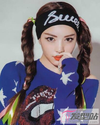 頂部頭發(fā)梳理得很整齊,女生的發(fā)量繁多,將長發(fā)編織成兩條粗厚蓬松的麻花辮,用五顏六色的緞帶裝飾,甜美可人。
