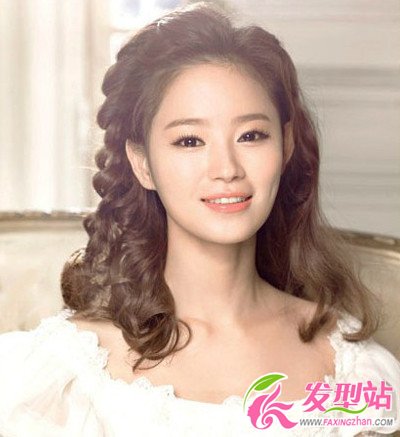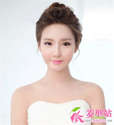 亮點點評:露額盤發(fā)巧妙的將劉海打造成盛開的花瓣造型,甜美而浪漫。兩鬢輕垂下來的卷發(fā)發(fā)絲更顯得女人味十足。