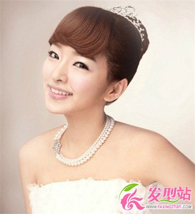 亮點點評:斜劉海微微向上翹起來,飄逸清新,高聳的發(fā)髻搭配桂冠造型,優(yōu)雅又不失俏皮感。