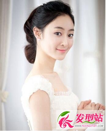 低馬尾太簡單不適合濃重的婚禮?那就錯(cuò)咯。這款簡單的低馬尾同樣扎出了甜美高貴的味道。劉海設(shè)計(jì)成蓬松的樣式,搭配扭轉(zhuǎn)的發(fā)束,頭型飽滿而富有質(zhì)感,帶上白色花飾,唯美高貴,兩鬢垂下的卷發(fā)也是女人味十足。
