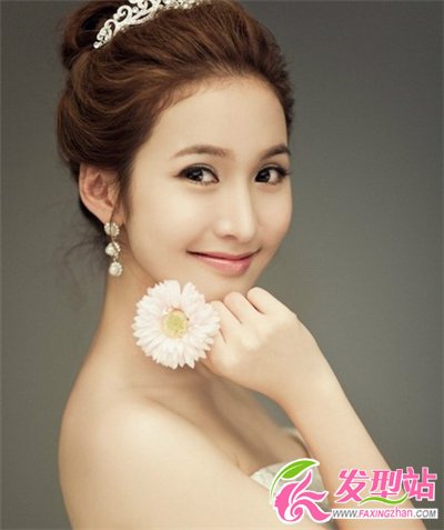 同樣是充滿韓味兒的一款新娘發(fā)型,無(wú)論何種長(zhǎng)度的頭發(fā)都可以輕松打造。蓬松的露額發(fā)型清新優(yōu)雅,襯托出了女生眼睛的明亮神采。頭頂?shù)?a href='http://ouknow.cn/special/huabtou.html' target='_blank'>花苞頭造型顯得她十分的可愛(ài),給人很清新時(shí)尚的感覺(jué)。銀色王冠發(fā)飾固定頂發(fā)的同時(shí)展現(xiàn)出了女生優(yōu)雅迷人的氣質(zhì),小公主的氣息自然展現(xiàn)。
