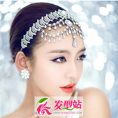 無劉海的盤發(fā)設計,用額飾來做一個修飾點綴,你不是那個最高貴的女神,誰會是呢,怎么能不成為婚禮中最為矚目的那個人呢。