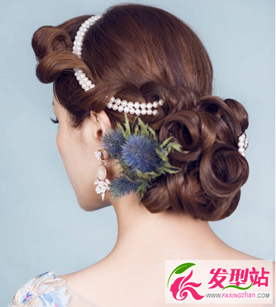 珍珠項鏈盤發(fā),珍珠象征純潔和高貴,搭配復古盤發(fā)更顯優(yōu)雅氣質。