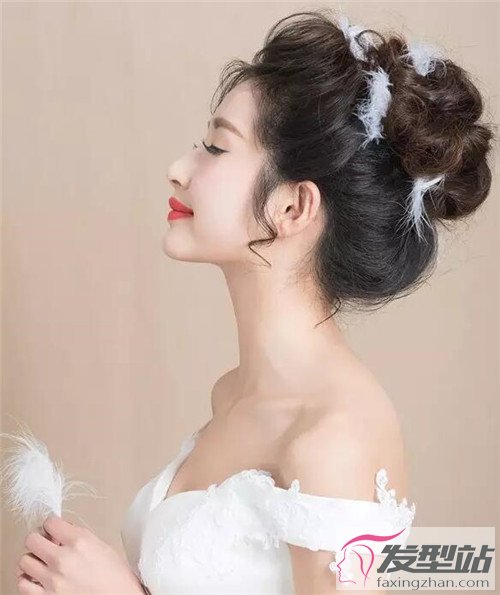 側面看這款潔白式的新娘發(fā)型,給人一種歲月靜好的美好氣息。