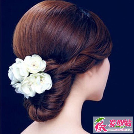最后,將所有打卷后的發(fā)尾整理妥當(dāng),再將耳旁兩側(cè)的頭發(fā)環(huán)繞至后方,借助發(fā)夾固定,最后點綴上精美飾品,這樣一款簡單優(yōu)雅的韓式新娘盤發(fā)便完成了。