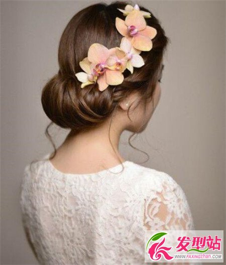 盤發(fā)發(fā)型的設計,搭配不同的鮮花發(fā)飾,意義就不一樣。選擇自己喜歡的花語花朵,更有浪漫夢幻風情。
