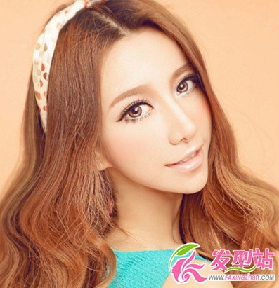 披肩的大波浪長卷發(fā),金棕色染發(fā)顏色,散發(fā)優(yōu)雅華麗氣質(zhì),中分長劉海更顯氣質(zhì),搭配波點(diǎn)發(fā)箍增添淑女氣息。