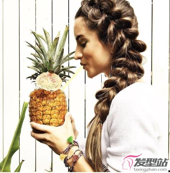 當你擁有長長的卷發(fā)發(fā)型時,可以試這種單側(cè)式的編發(fā)造型,既可以造出女性化的造型。